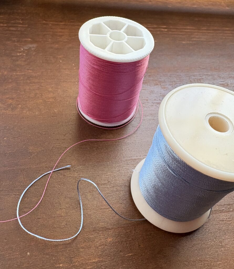 ケーンをチューブにつけるために、糸を使います。